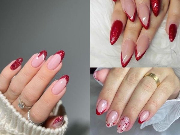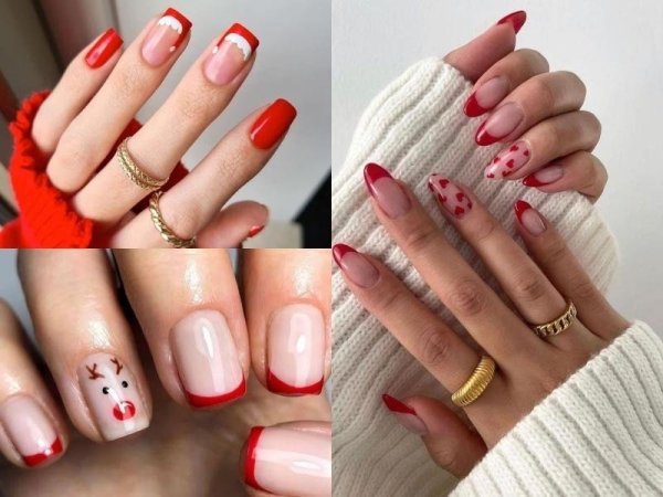 Mẫu nail noel đầu móng đỏ (Nguồn: erica – Pinterest) Mẫu nail noel đầu móng đỏ (Nguồn: SHEIN – Pinterest)Mẫu nail noel màu tím sữa