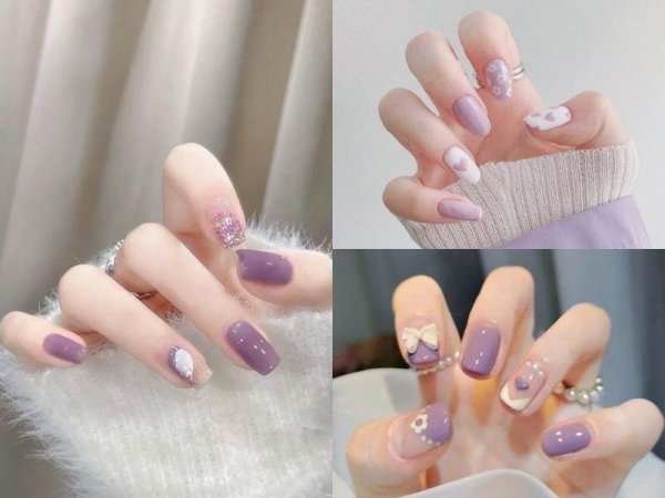 Mẫu nail noel màu tím sữa (Nguồn: kbeautyaddiction.com) Mẫu nail noel màu tím sữa (Nguồn: Hương Ng – Pinterest)Mẫu nail noel xám đơn giản