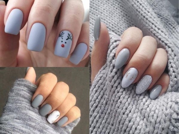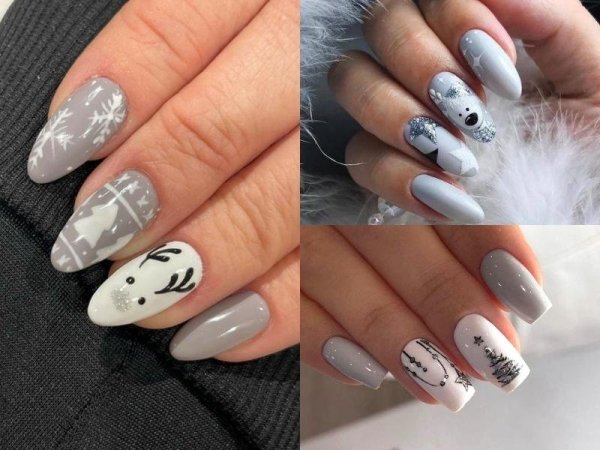 Không nhiều chị em ưa chuộng màu xám nhưng trên thực tế đây lại là một màu rất phổ biến trong mùa Giáng sinh. Nail xám tôn lên được nét đẹp nhẹ nhàng, phù hợp nhiều độ tuổi. Mọi người chỉ cần thêm một vài chi tiết trang trí bông tuyết đã có một mẫu nail xám lý tưởng cho ngày Noel.
