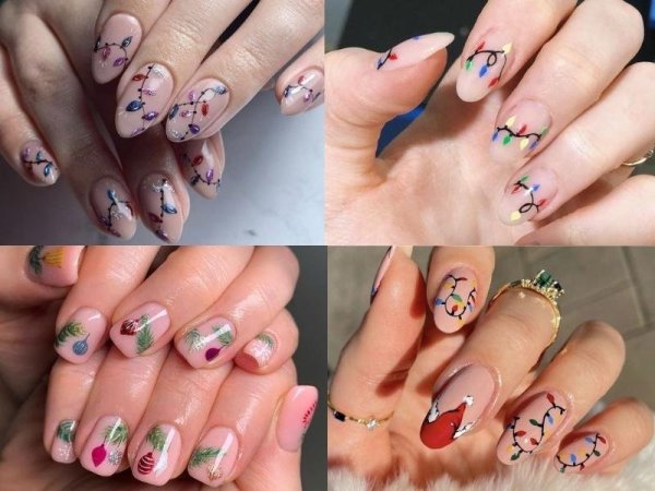 Một trong những mẫu nail Noel đơn giản mà nàng có thể tham khảo đó là nail dây đèn trang trí Giáng sinh. Nàng chỉ cần tận dụng những viên đá nhỏ để có thể mô phỏng thành công hình ảnh những chiếc đèn nhỏ lấp lính. Áp dụng cách này là nàng đã có thể tạo ra bộ nail Noel sang chảnh cho dịp lễ sắp tới.