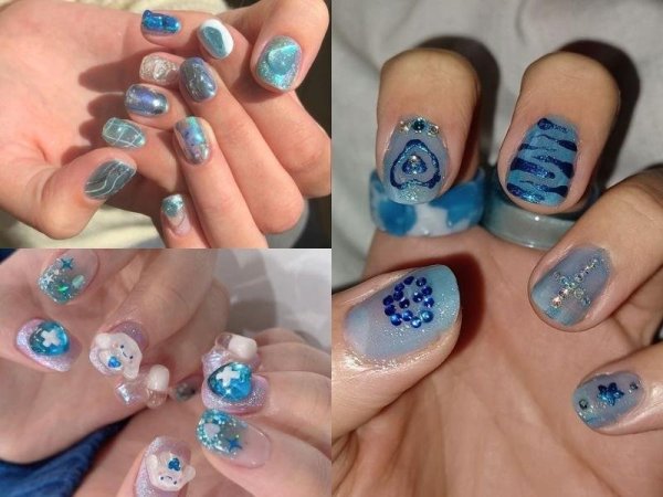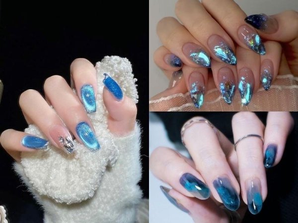 Khác với sắc đỏ nổi bật, màu xanh biển thuộc gam màu trầm nhưng mang vẻ đẹp tươi mát. Bạn có thể kết hợp nail màu xanh biển cùng kinh tuyến, ánh nhũ hay hình vẽ đơn giản nhưng vô cùng tôn da. Bên cạnh sắc xanh cá tính hơi kén da, bạn có thể thay thế bằng mẫu nail giáng sinh màu xanh dương mới lạ. Xanh dương kết hợp cùng những gam màu nóng của lễ hội mang lại cảm giác dễ chịu, dịu mắt.