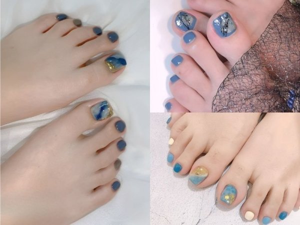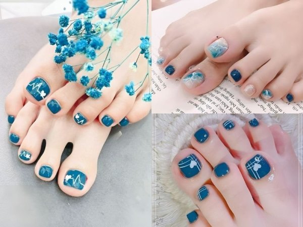 Sơn móng chân màu xanh ngọc giúp bạn trông quý phái và thanh lịch hơn (Nguồn: Phạm Tú, Ngọc Nguyễn Trang, Anna Quỳnh) Mẫu móng chân màu xanh ngọc sành điệu và thời thượng (Nguồn: Min Nail, Ngọc Phượng Nail, The Palm)Mẫu sơn móng chân màu xanh dương