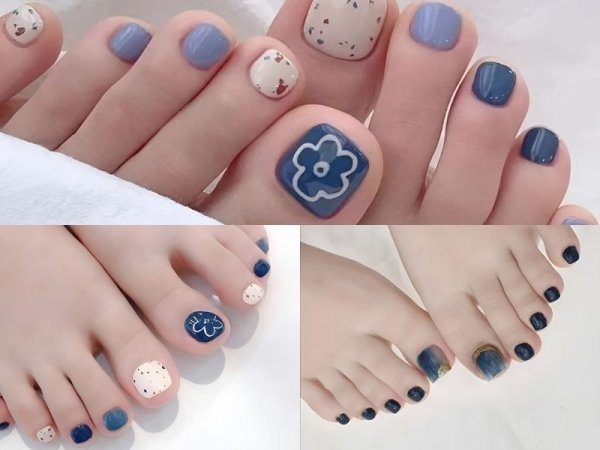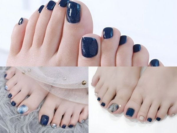 Mẫu móng chân màu xanh dương tươi mát và thanh thoát (Nguồn: esty.com, Vi Nails, TTL Nails) Màu sơn móng chân đẹp màu xanh dương bắt mắt (Nguồn: Shein.com, TTL Nails, Như Ý Nails)Mẫu sơn móng chân màu đỏ rượu