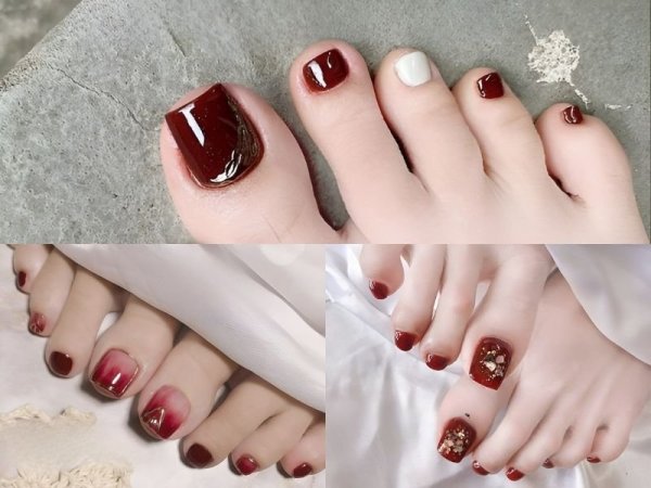 Một trong những màu sơn móng chân làm sáng da cực tốt được nhiều cô nàng lựa chọn khi đến tiệm nail chính là màu đỏ rượu quyến rũ. Với màu sơn này, dù bạn lựa chọn sơn trơn đơn giản hay vẽ họa tiết cầu kỳ cũng luôn toát lên được sự sang trọng, quyến rũ đặc trưng mà sắc đỏ mang lại. Đặc biệt, màu đỏ rượu rất phù hợp với những bạn có làn da hơi ngăm, chúng không chỉ giúp chân bạn được nâng tone hoàn hảo mà còn khiến đôi chân trở nên thu hút hơn. Sắc đỏ này cũng cực kỳ phù hợp để các chị em diện vào những dịp lễ hội cuối năm sôi động nữa đấy!