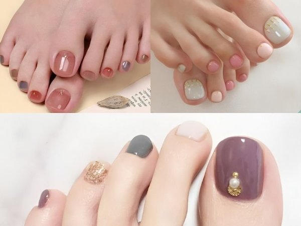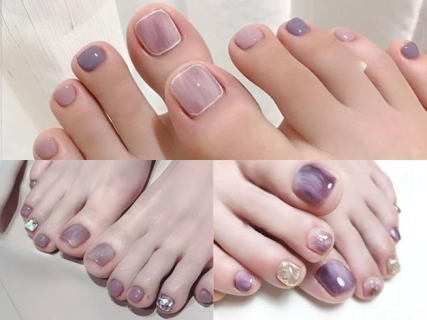 Màu sơn móng chân đẹp và trendy (Nguồn: Ann Nhi, Ansha Nails, New Nail Style) Màu sơn gel móng chân đẹp với sắc tím mộng mơ và thanh lịch (Nguồn: T19 Nail, Wink Nails, Rs Fashion)Mẫu sơn móng chân màu cam đất