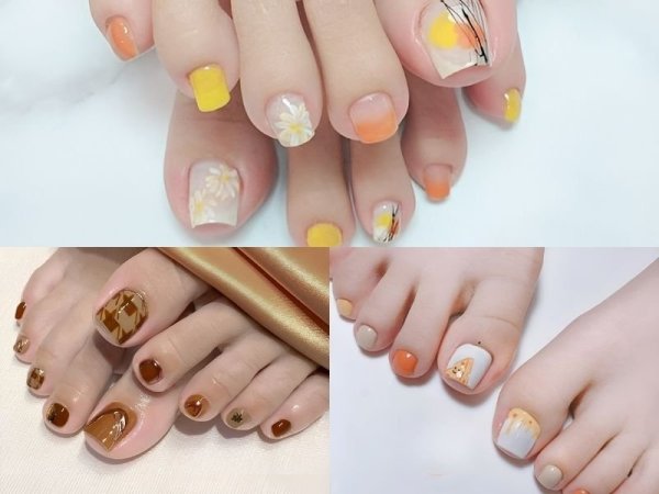 Màu sơn gel móng chân đẹp cam đất trendy (Nguồn: Quyen Dieu Nguyen Academy, Sam’s House, Nail Dương Hoa) Mẫu sơn móng chân đẹp tone cam đất sành điệu và thời thượng (Nguồn: V3 Nail Beauty Salon, Nan Nails, Thu Hà Nails)Mẫu sơn móng chân màu xám