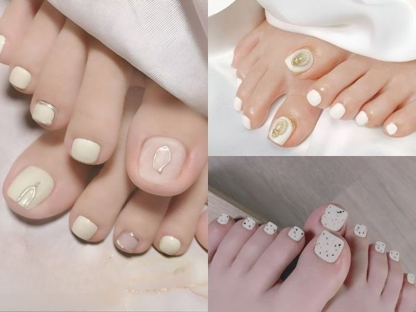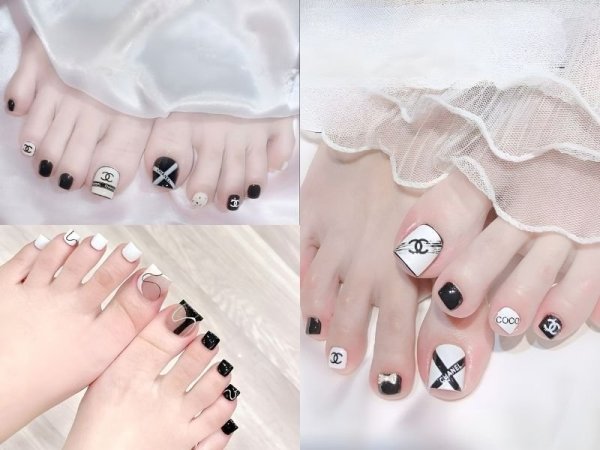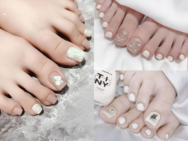 Nail chân màu trắng nhẹ nhàng và thanh lịch cho phái nữ (Nguồn: Oăn Nails Beauty, Mika Nails, Lamia) Mẫu sơn móng chân đẹp nhẹ nhàng cho bạn nữ (Nguồn: Nails by Nhu Y Nguyen, My Chuu, Jmi Nails)Mẫu sơn móng chân màu đen