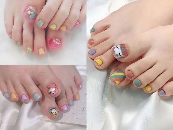 Màu móng chân tôn da với nhiều màu sắc khác nhau (Nguồn: Caycream, Cecelie, T Nail Room) Màu sơn móng chân đẹp cùng sự kết hợp của nhiều màu sắc đa dạng (Nguồn: Miin Nail, Imira Nail, Ikuma Nail)Mẫu sơn móng chân làm trắng da