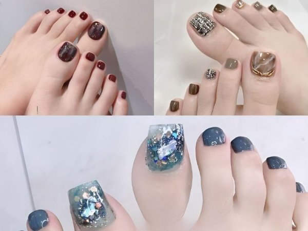 Màu sơn móng chân đẹp với ánh kim lấp lánh (Nguồn: T Nail Room, Rurb6400s, Nail Lee SG) Dễ dàng phù hợp với mọi phong cách và hoàn cảnh khác nhau (Nguồn: shein.com, Dashing Diva USA, T Nail Room)Mẫu sơn móng chân tráng gương