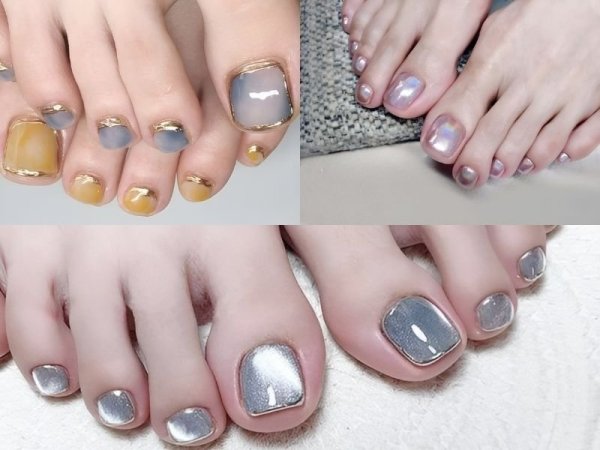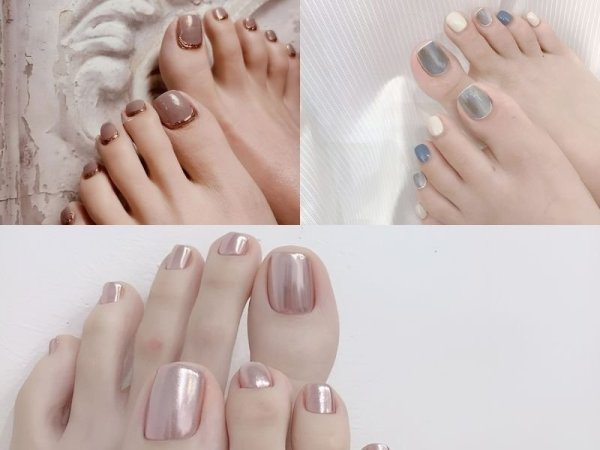 Sơn móng chân màu nào đẹp? Tráng gương độc đáo và cá tính (Nguồn: T Studio Cyclashnail, Kydu Nail, Nail By JJOO) Tráng gương là một trong các màu sơn móng chân đẹp được săn đón nhiều hiện nay (Nguồn: Nail Salon Riciel, Pin Pin Nail Art, beauty.hotpperp.jp)Mẫu sơn móng chân mix nhiều màu