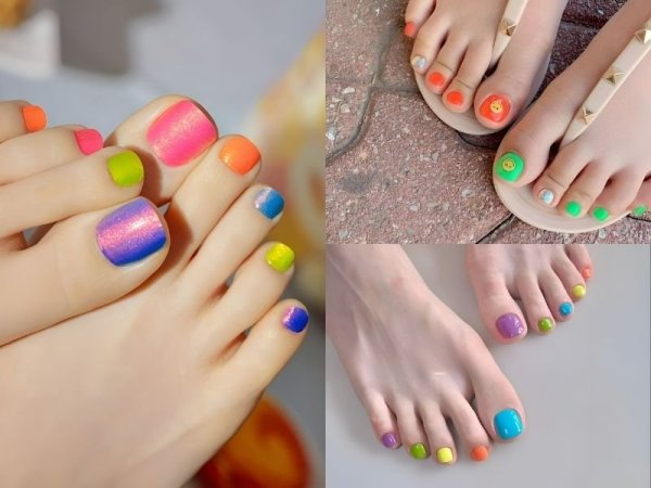 Nếu bạn muốn một chút cá tính nổi bật cho mẫu nail của mình thì có thể thử sức với mẫu móng chân màu neon độc đáo. Với sắc độ màu khá sáng và nổi bật, đặc biệt lại không hề kén da đem đến một vẻ ngoài cực kỳ nổi bật và dễ dàng thu hút ánh nhìn của mọi người xung quanh. Bạn có thể thử một số màu móng chân táo bạo như vàng, hồng, xanh lá, mix cầu vồng đẹp mắt để tạo nên một mẫu nail cực kỳ độc đáo nhé!