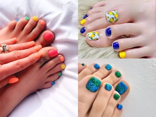 Nếu bạn nhàm chán với những kiểu sơn màu trơn nguyên bản thì có thể thử sức với mẫu sơn móng chân mix nhiều màu độc đáo. Đây là mẫu nail với sự kết hợp nhiều màu sắc độc đáo, mới lạ, đem lại vẻ ngoài cực kỳ cuốn hút và còn làm trắng da hiệu quả. Tuy nhiên bạn cũng nên lưu ý mix&match những màu sắc cùng tone hoặc là phù hợp sắc độ với nhau như trắng – xanh dương – hồng, vàng – trắng – hồng, đỏ – trắng – cam,….ưu tiên những màu pastel để có bộ nail sành điệu hơn nhé! Ngoài ra, bạn cũng có thể vẽ thêm vài họa tiết đơn giản hoặc đính đá nhỏ để tăng thêm sự cá tính cho bộ nail của mình!