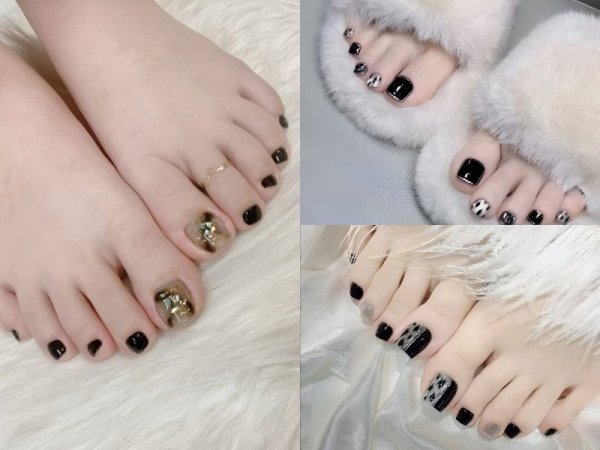 Mẫu móng chân màu đen đẹp và thời thượng cho bạn nữ (Nguồn: Mĩm Nails, Thu Hà Nails, Linh Tây Nails) Màu sơn gel móng chân đẹp bí ẩn và huyền bí (Nguồn: Miaku Nail Art, Le’s Charm, T Nail Room)Mẫu sơn móng chân màu hồng đất