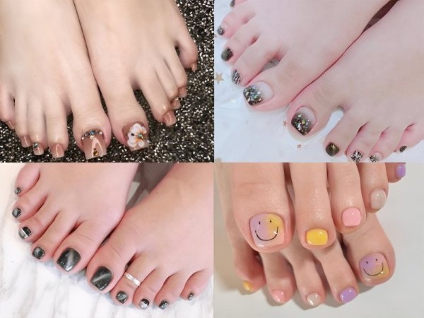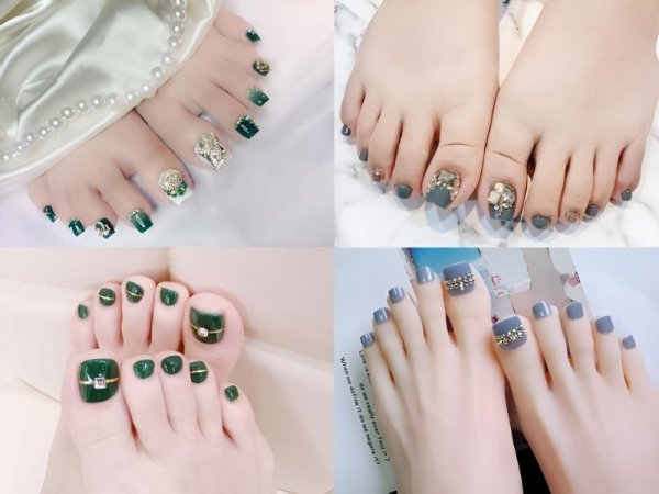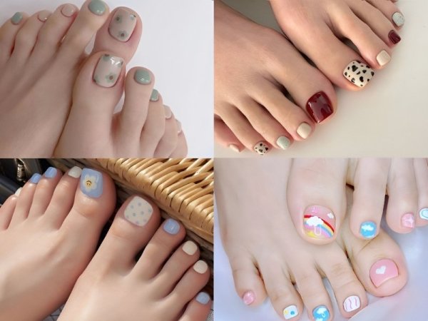 Nail màu thạch giúp đôi chân thanh thoát, thích hợp với các bạn có bàn chân lớn (Nguồn: Thời trang Việt Thắng, @susu1766 – Pinterest, @quyendieunguyennail – Pinterest, shopee.vn)Nail chân vẽ hoạt hình