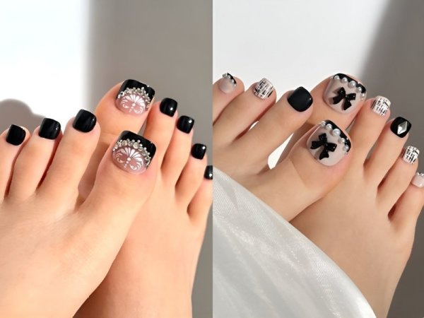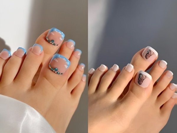 Đính đá là cách nhanh nhất giúp bạn có một bộ nail sang chảnh (Nguồn: @refinedstylefashion – Pinterest, @nguyenthihongdaohv1994 – Pinterest, @Beyprern_FashionShop – Pinterest, enail.vn) Hình vẽ móng chân đẹp hơn nhờ điểm xuyết các chi tiết đính đá, đính cườm (Nguồn: us.shein.com)Mẫu vẽ móng chân kẻ viền