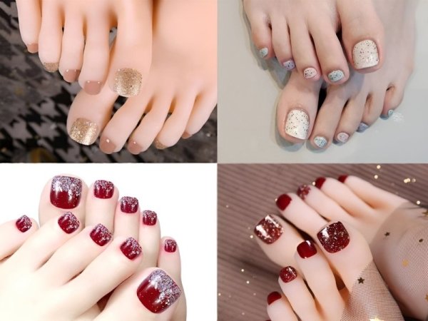 Một trong những cách vẽ móng chân đơn giản, nhanh chóng nhưng kết quả vô cùng nổi bật chính là sử dụng kim tuyến. Với kim tuyến, bạn có thể sử dụng sơn gel hoặc sơn bột tùy theo sở thích và độ tiện dụng.