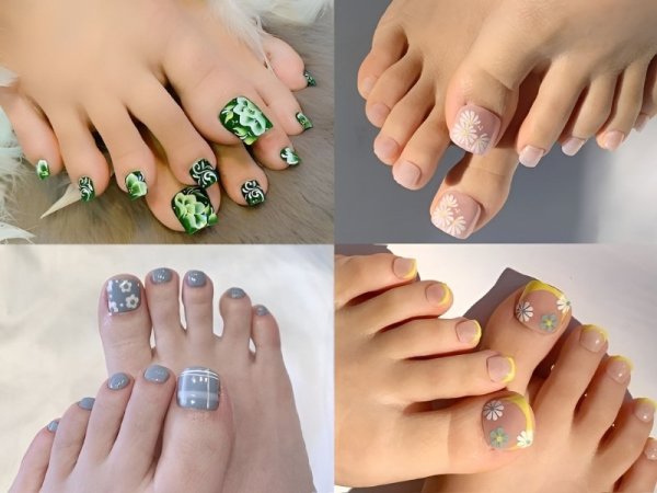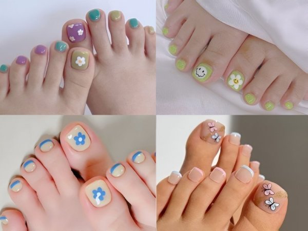Mẫu vẽ hoa móng chân đẹp, đơn giản dành cho các bạn học sinh, sinh viên (Nguồn: poshmark.com, us.romwe.com, @yourhappiness_ishere – Pinterest) Họa tiết hoa tinh nghịch, đáng yêu (Nguồn: @thanhquynh5838 – Pinterest, @minhtuoi992 – Pinterest, @Mananailstyle – Pinterest)Mẫu vẽ móng chân logo thương hiệu