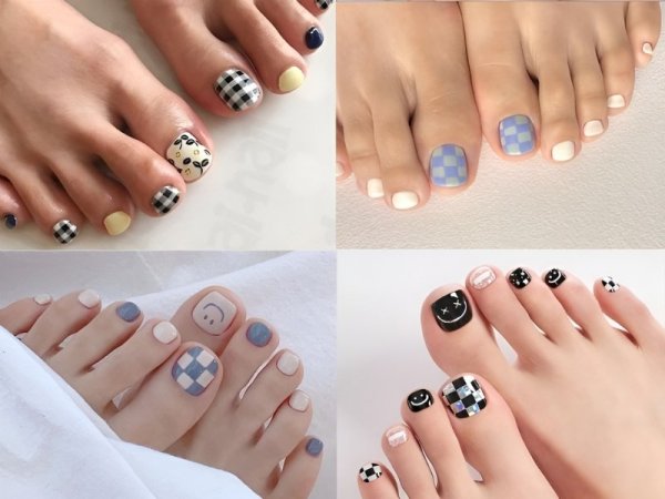 Họa tiết bàn cờ là một mẫu vẽ móng chân đơn giản nhưng mang lại hiệu ứng hút mắt cho móng chân. Các bạn chỉ cần sơn màu nền, sau đó dùng bút vẽ móng kẻ các đường thẳng ngang và dọc tương tự một bàn cờ vua. Màu sắc của bàn cờ không giới hạn hai màu trắng và đen mà biến đổi dựa trên sở thích của chủ nhân bộ móng. Tuy nhiên, bạn nên hiểu rõ quy tắc phối màu để tránh để tránh dìm da, lòe loẹt và thiếu thẩm mỹ.