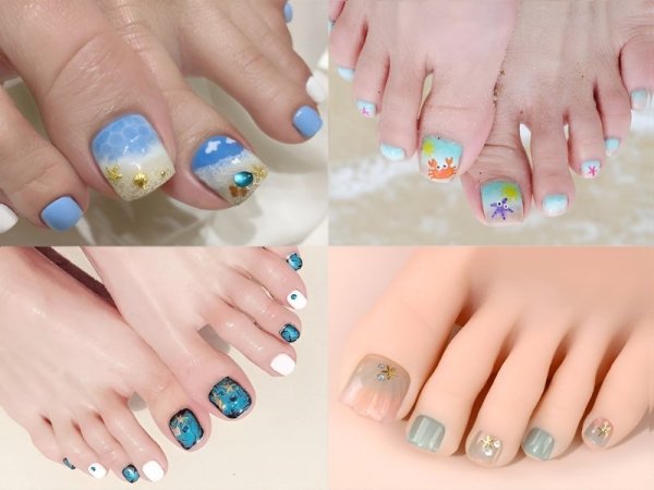 Đi biển với những mẫu vẽ móng chân cảnh biển là lựa chọn hoàn hảo (Nguồn: Jade Phan_Nail Art, Học nghề nail, Shein.vn, BestDealPlus)Mẫu vẽ móng chân hình món ăn