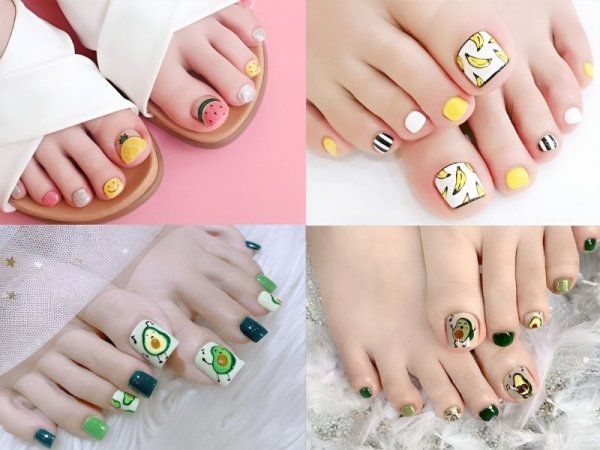 Những cô nàng đam mê ẩm thực chắc hẳn sẽ rất yêu thích mẫu móng chân dễ thương, khắc họa những món ăn hợp gu. Mẫu vẽ móng chân hình món ăn không giới hạn hình thù, màu sắc, thích hợp để các bạn biến hóa mỗi tuần một bộ nail mới.