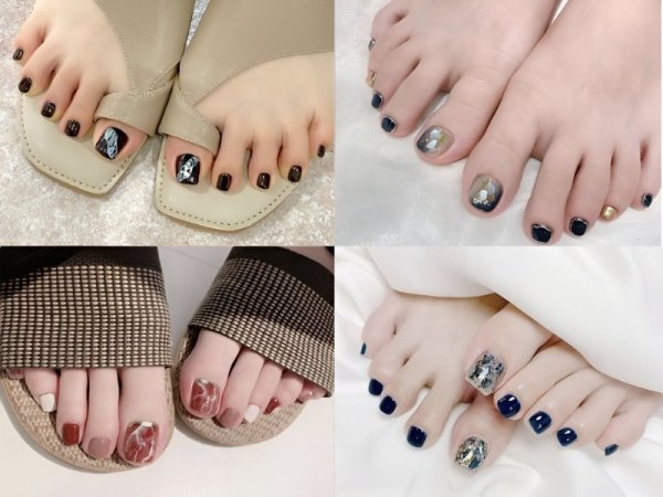 Móng chân ẩn xà cừ sang trong, tính tế được vẽ từ nhiều lớp sơn khác nhau (Nguồn: @Beautysalonk1 – Pinterest, shopee.vn)Vẽ móng chân đẹp họa tiết vân đá