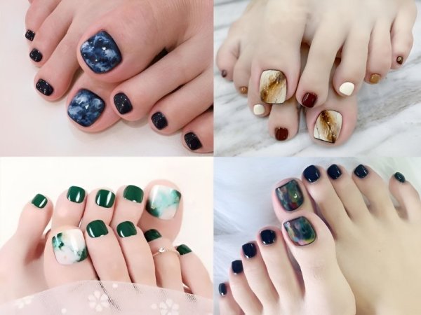 Mẫu vẽ móng chân họa tiết vân đá giúp các bạn nữ biến hóa đa phong cách. Khi chọn nail vân đá màu cầu vồng, bạn sẽ trở nên trẻ trung, mới lạ và thu hút. Khi chọn các mẫu nail vân đen, vân xanh, vân nâu, vẻ đẹp huyền bí sẽ được khắc họa trên bộ nail của bạn. Bên cạnh đó, mẫu vẽ nail chân đẹp chi tiết vân đá không kén da cũng như dáng móng, nên bạn có thể thoải mái lựa chọn mẫu nail này.