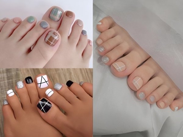 Kẻ sọc là ý tưởng vẽ móng chân đơn giản nhưng luôn hợp thời trang. Các bạn có thể kẻ sọc dọc, sọc ngang, kẻ sọc caro tùy theo phong cách cá nhân. Những dòng kẻ đơn giản mang đến sự thanh lịch, nhẹ nhàng và cá tính cho các bạn nữ. Hơn thế nữa, mẫu móng chân kẻ sọc phù hợp với hầu hết các kiểu trang phục, trong nhiều hoàn cảnh khác nhau như đi làm, đi dự tiệc hoặc đám cưới.