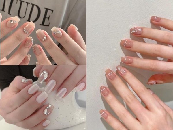 Nếu bạn muốn tạo thêm điểm nhấn lung linh nhưng không quá cầu kỳ cho bộ nail của mình thì hãy chọn kết hợp đính đá nhỏ ở một vài ngón tay nhé. Những viên đá nhỏ lấp lánh màu vàng, trắng sẽ khó bị bong, tróc hơn, có độ bền cao và giúp bạn thoải mái vận động khi đi học, đi chơi. Những màu sơn gel hồng, nude hay pastel sẽ là sự lựa chọn hoàn hảo cho các bạn học sinh. Nếu bạn tự làm nail tại nhà thì nhớ sử dụng gel đính đá để đá dính chắc hơn nhé.