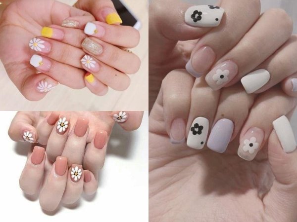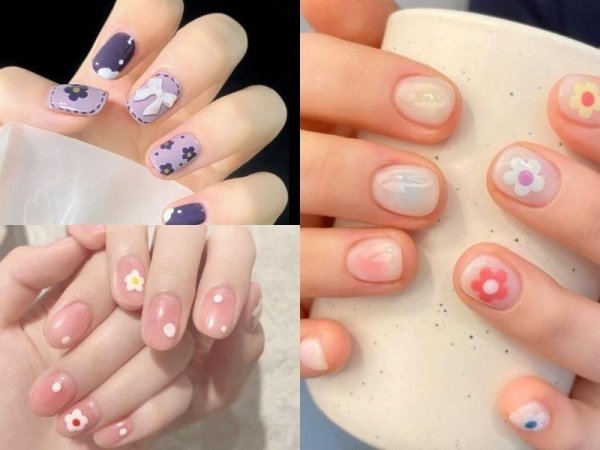 Mẫu nail vẽ hoa màu pastel sáng vừa trẻ trung vừa nữ tính, duyên dáng là nail xinh đơn giản cho học sinh (Nguồn: nguyenngan9292 – Pinterest, minhrikao – Pinterest, laycie_l – Pinterest) Những kiểu hoa cánh tròn cùng màu sơn gel rực rỡ sẽ tạo điểm nhấn nổi bật và đáng yêu. ngọt ngào hơn (Nguồn: Giang Trần – Pinterest, lamnails.net, HowLifeStyles – Pinterest)Mẫu nail học sinh họa tiết con vật cute