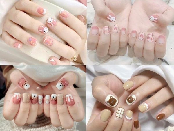 Mẫu nail cho học sinh cực dễ thương với họa tiết con vật sáng tạo theo sở thích riêng (Nguồn: adil03216163066 – Pinterest, kbeautyaccdiction.com, hamydunggl – Pinterest) Những mẫu nail ngọt ngào với hình thỏ, gấu sẽ giúp bạn thêm đáng yêu, trẻ trung (Nguồn: Queen Nail – Pinterest, mary – Pinterest, Chan Chan Nail – Pinterest, Như Ý Nguyễn – Pinterest)Mẫu nail học sinh họa tiết bò sữa