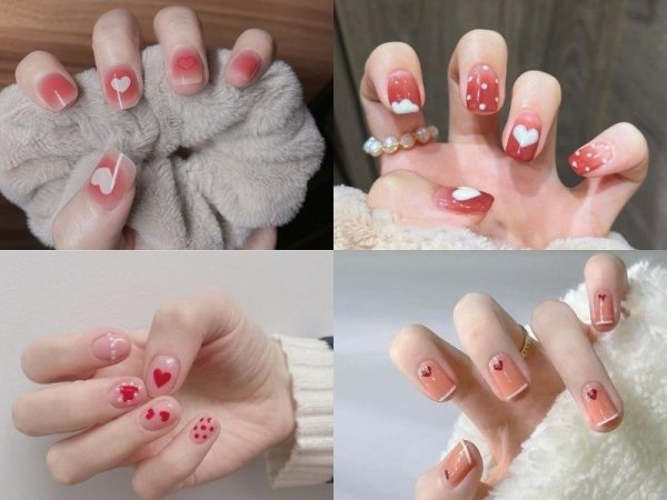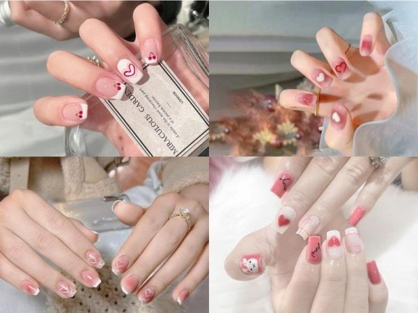 Những mẫu nail trái tim màu hồng vô cùng ngọt ngào và đáng yêu (Nguồn: shein.com, Ruby Nail – Pinterest, Thu Nguyễn Nail – Pinterest) Kiểu vẽ nail trái tim đơn giản nhưng rất phù hợp với các bạn học sinh (Nguồn: shein.com, ikeehome.com)Mẫu nail học sinh họa tiết chấm tròn