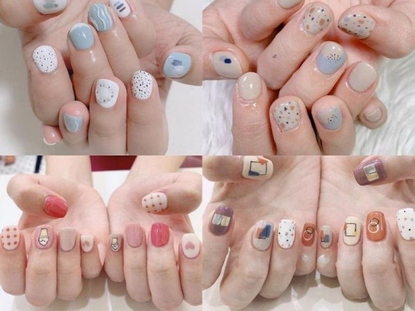 Mẫu nail sơn nhiều màu pastel nhẹ nhàng, trẻ trung rất phù hợp với lứa tuổi học sinh (Nguồn: hdu1 – Pinterest, Mi Beauty – Pinterest, dukie_lys – Pinterest) Sơn móng tay đơn giản cho học sinh kiểu sơn nhiều màu rực rỡ hoặc có hiệu ứng loang màu sẽ giúp bạn nổi bật hơn (Nguồn: Lolly_002, Thảo Cami – Pinterest, dukie_lys – Pinterest)Mẫu nail học sinh đính đá nhỏ đơn giản