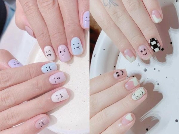 Mẫu nail với hình vẽ ngộ nghĩnh được sáng tạo theo phong cách riêng sẽ rất phù hợp với các bạn học sinh đó. Với các họa tiết bắt mắt như mặt cười hay các nhân vật hoạt hình, mang đến sự trẻ trung và đáng yêu. Kiểu nail này thường được kết hợp sơn những màu gam màu tươi sáng như hồng, vàng, trắng sẽ vừa độc đáo vừa đẹp mắt.