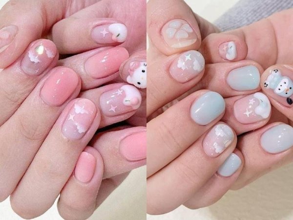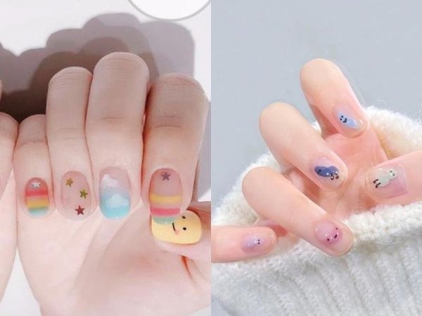 Mẫu nail họa tiết bầu trời màu hồng vừa đáng yêu, vừa nữ tính (Nguồn: Krixi Nail – Pinterest) Chọn những màu sơn pastel nhẹ nhàng khi kết hợp với kiểu vẽ mây, sao (Nguồn: luienjade – Pinterest) Kiểu vẽ họa tiết này giúp tạo điểm nhấn cho bộ nail (Nguồn: kuromimmelody – Pinterest)Mẫu nail học sinh Hàn Quốc