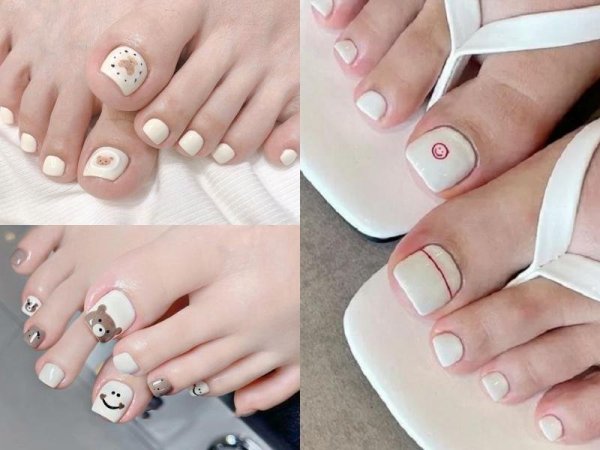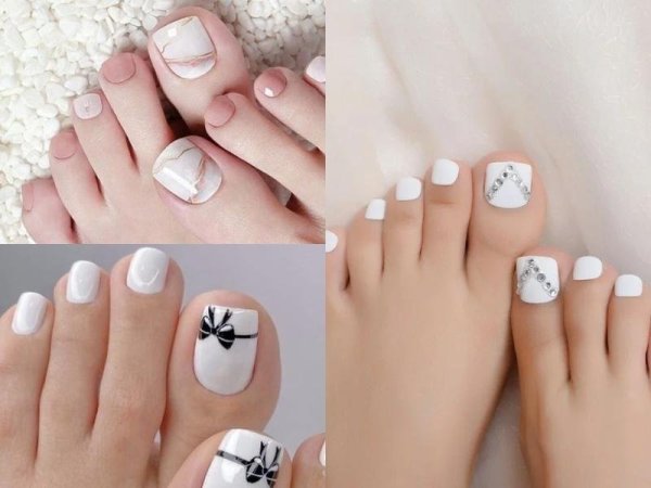 Móng chân màu trắng đẹp hơn với những họa tiết được vẽ lên (Nguồn: yody.vn, coedo.com.vn) Màu móng chân trắng tạo nên sự tươi sáng và thuần khiết (Nguồn: chiaki.vn, coedo.com.vn)Sơn móng chân màu vàng cho da ngăm