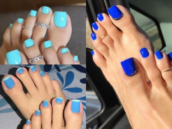 Màu xanh lam có nhiều tông màu để các nàng lựa chọn (Nguồn: beaudy.vn, NailDesignsJournal) Móng chân màu xanh lam có thể kết hợp với các phụ kiện trang sức để thu hút và nổi bật hơn (Nguồn: Mungfali.com, Olad Beauty)Sơn móng chân màu xanh lá cây