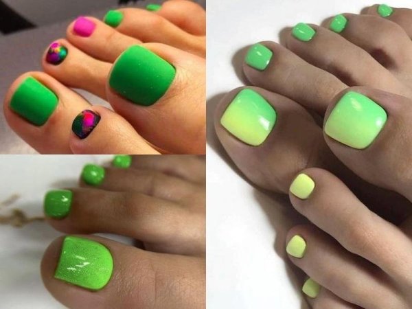 Chúng ta đều biết màu xanh lá cây tượng trưng cho sự tươi mới và sự sống. Và đây cũng là một màu móng chân đẹp cho da ngăm đó, màu xanh lá cây sẽ mang lại sự hài hòa, tự nhiên và tạo điểm nhấn tươi sáng cho móng chân. Màu xanh lá cây cũng rất thích hợp với các họa tiết hoa lá, hình học, nghệ thuật, trừu tượng,… Bạn hãy thử vẽ lên hình ảnh mình thích để có được bộ móng độc nhất vô nhị.