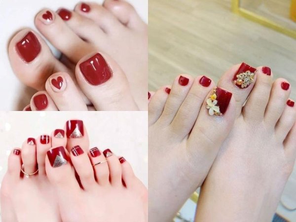 Màu móng chân đỏ quyến rũ và mạnh mẽ (Nguồn: kienthucspa.edu.vn, thtantai2.edu.vn, thoitrangwiki.com) Màu móng chân đỏ thạch cũng là sự lựa chọn được các bạn nữ yêu thích (Nguồn: duhocakina.edu.vn, cdgdbentre.edu.vn)Sơn móng chân màu đỏ rượu đất