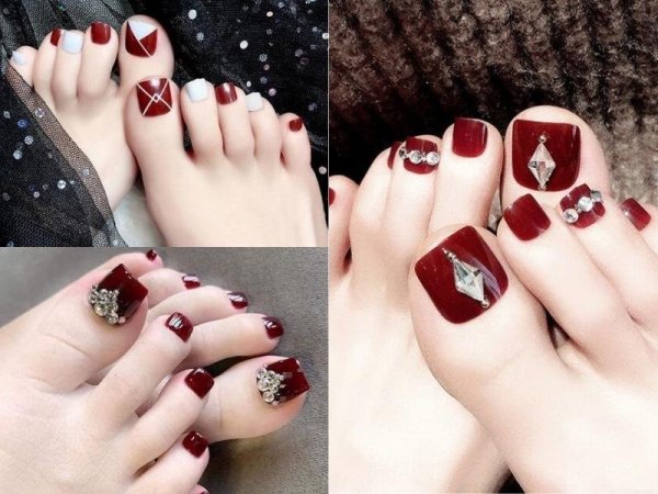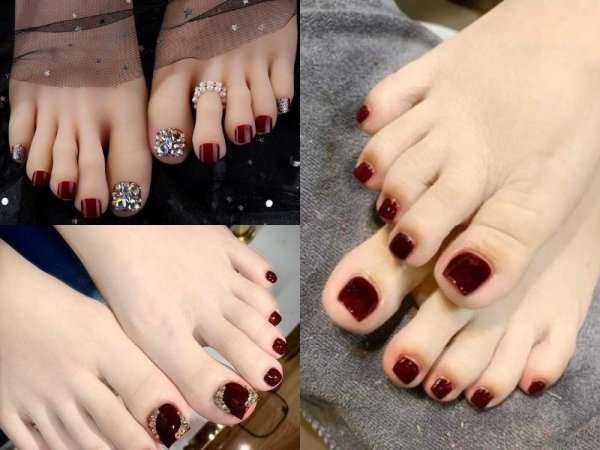 Móng chân màu rượu đất giúp nàng nổi bật trong đám đông (Nguồn: duhocakina.edu.vn) Móng chân đỏ màu rượu đất thích hợp với những bữa tiệc sang trọng (Nguồn: lamdepmoingay.com.vn, thdonghoadian.edu.vn, thdonghoadian.edu.vn)Sơn móng chân màu tím