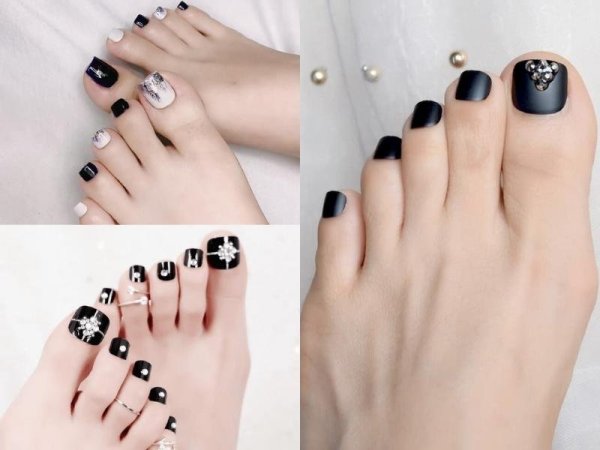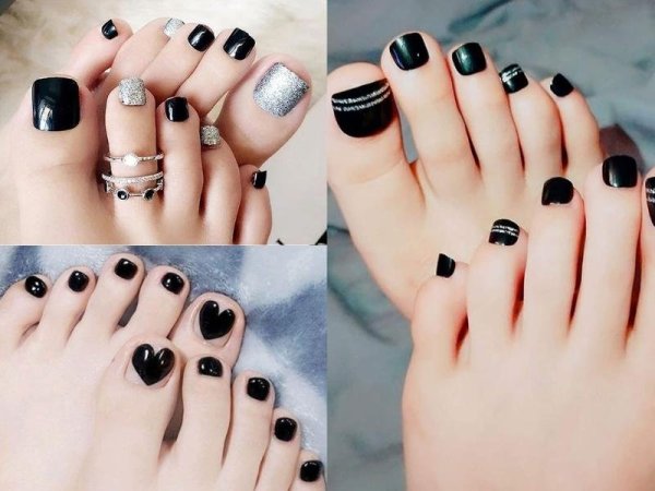 Móng chân màu đen phù hợp với tông màu da ngăm (Nguồn: thegioilamdep.vn, vuahanghieu.com) Móng chân đen quyến rũ bí ẩn (Nguồn: toigingiuvedep.vn, cdgdbentre.edu.vn, xaydungso.vn)Mẫu móng chân cho da ngăm màu cam đất