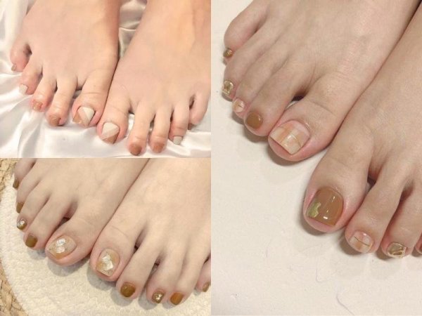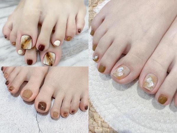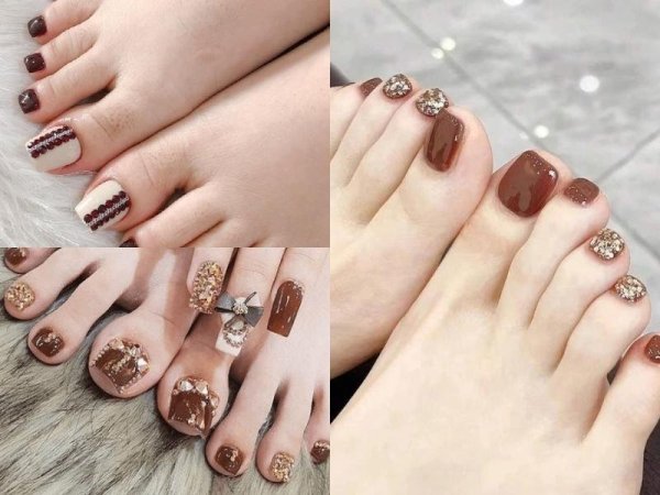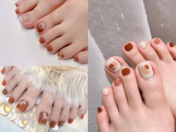 Nâu nhạt là màu móng chân đẹp sáng da có thể kết hợp với nhiều họa tiết (Nguồn: duhocakina.edu.vn, kynguyenlamdep.com, coedo.com.vn) Màu móng chân nâu nhạt kết hợp giữa sự ấm áp và thanh lịch (Nguồn: coedo.com.vn)Sơn móng chân màu nâu đậm