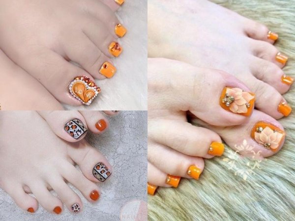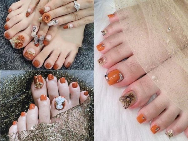 Màu cam đất dễ thương giúp các nàng trẻ trung dễ thương (Nguồn: nqmedical.vn, kienthucspa.edu.vn, kienthucspa.edu.vn) Móng chân màu cam đất được trang trí cầu kỳ (Nguồn: duhocakina.edu.vn, kienthucspa.edu.vn)Sơn móng chân màu cam tươi sáng
