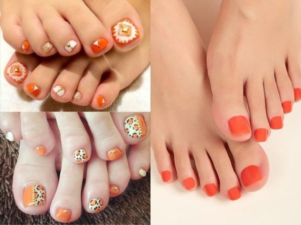 Màu cam tươi giúp các nàng năng động và tươi tắn hơn (Nguồn: kienthucspa.edu.vn, coedo.com.vn, dress-vi.techinfus.com) Móng chân màu cam tươi được trang trí phụ kiện (Nguồn: kienthucspa.edu.vn, xaydungso.vn, nailbox.vn)Sơn móng chân màu pastel
