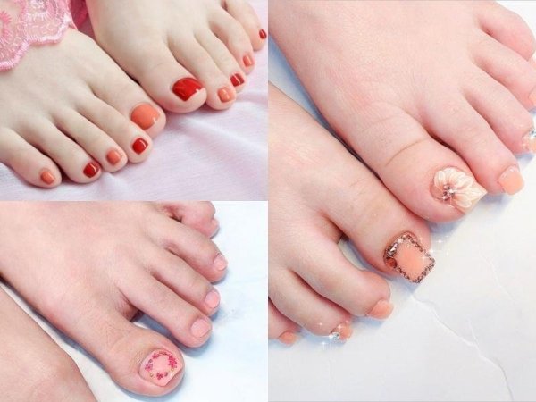 Móng chân màu đào vừa dịu dàng giúp càng nên “thơ” (Nguồn: hocnghenail.edu.vn, seoulspa.vn, www.myglamm.com) Màu anh đào có thể ngả cam hoặc ngả sang màu hồng (Nguồn: duhocakina.edu.vn, www.myglamm.com, hocnghenail.edu.vn)Sơn móng chân màu vân đá
