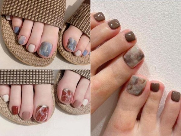 Màu vân đá phù hợp với nhiều dịp từ hàng ngày đến các bữa tiệc sang trọng (Nguồn: lamdepmoingay.com.vn, seoulspa.vn, kynguyenlamdep.com) Màu móng chân vân đá có nhiều kiểu dáng (Nguồn: money24h.vn, beaudy.vn, thoitrangwiki.com)Nail chân màu metallic tráng gương