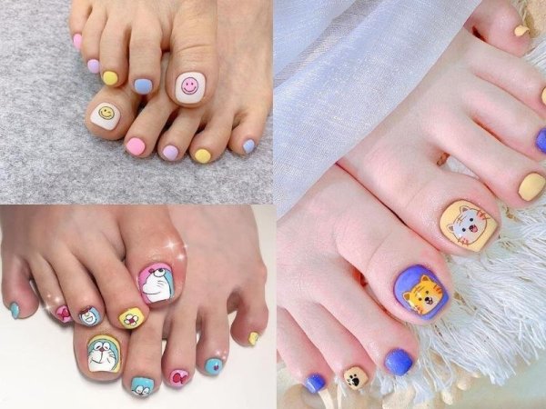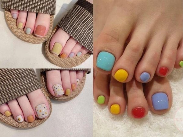Màu nail chân cho da ngăm đen đẹp mix nhiều màu (Nguồn: www.lamdieu.com, xaydungso.vn) Móng chân nhiều màu nhiều họa tiết vừa trẻ trung vừa cute (Nguồn: seoulspa.vn, money24h.vn, nailbox.vn)Cách chăm sóc màu móng chân đẹp cho da ngăm