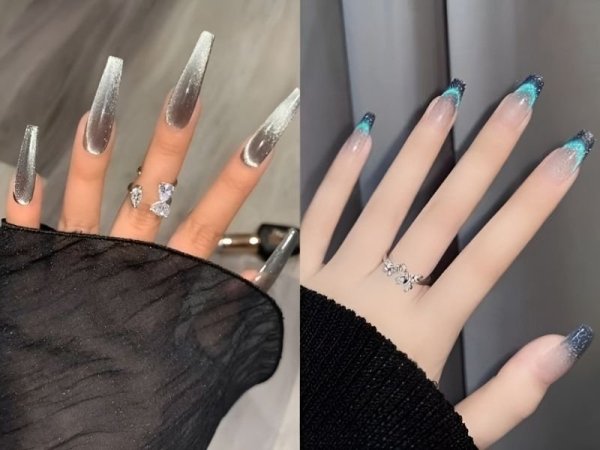 Mẫu móng tay ombre tráng gương hiện đại (Nguồn: thenailest.com, SHEIN) Mẫu nail ombre tráng gương sang trọng, đẹp mắt (Nguồn: Fashion Addiction, Marie Sejlitz, weheartit.com)Mẫu nail ombre mắt mèo trendy