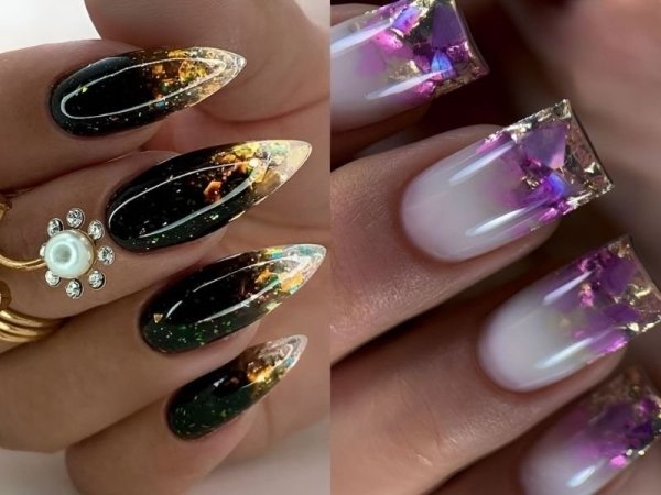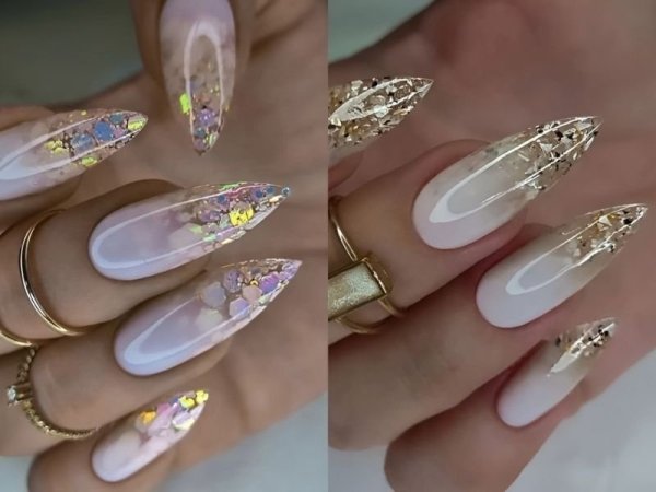 Những mẫu nail ombre kết hợp kim tuyến lấp lánh (Nguồn: chicpursuit.com, AMR Hair & Beauty) Mẫu nail ombre nhũ đẹp mắt (Nguồn: Leo Nails, ninefrogs.com) Những mẫu nail ombre kim tuyến sang trọng (Nguồn: howlifestyles.com, ninefrogs.com)Mẫu nail ombre kết hợp đắp bột 3D sang chảnh