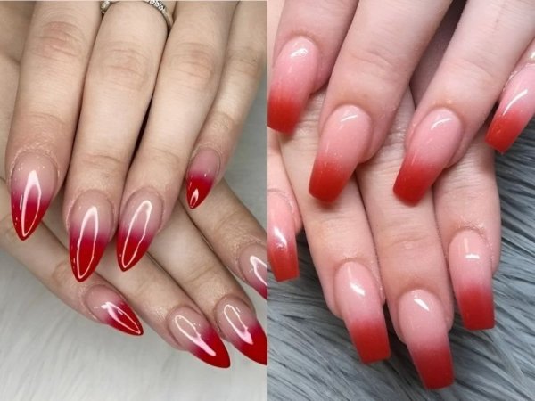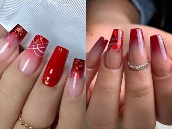 Nail ombre tông đỏ là mẫu nail nổi bật, ấn tượng mà bạn không nên bỏ qua. Sắc đỏ rực rỡ rất phù hợp khi phối cùng những màu cơ bản như: trắng, đen, nude,… Bạn có thể lựa chọn mẫu nail ombre đỏ trơn màu để diện hàng ngày. Vào những dịp lễ hội hoặc bữa tiệc đặc biệt, hãy kết hợp nail ombre đỏ với họa tiết ánh nhũ hoặc đính đá cầu kỳ để tổng thể được nổi bật và bắt mắt hơn.