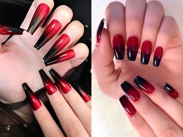 Mẫu nail ombre đỏ đơn giản, đẹp mắt (Nguồn: fabmood.com, women-club.online) Mẫu nail ombre đỏ phối đen giúp tôn da (Nguồn: women-club.online, weheartit.com) Mẫu nail ombre đỏ nổi bật, ấn tượng (Nguồn: kbeautyaddiction.com, vk.com)Mẫu nail ombre xanh ngọc tươi mát